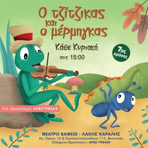 Ο Τζίτζικας και ο Μέρμηγκας (7ος Χρόνος) Αγίου Όρους 16 & Κωνσταντινουπόλεως 115 (Μετρό Κεραμεικός) Θέατρο Βαφείο - Votanikos, Attiki